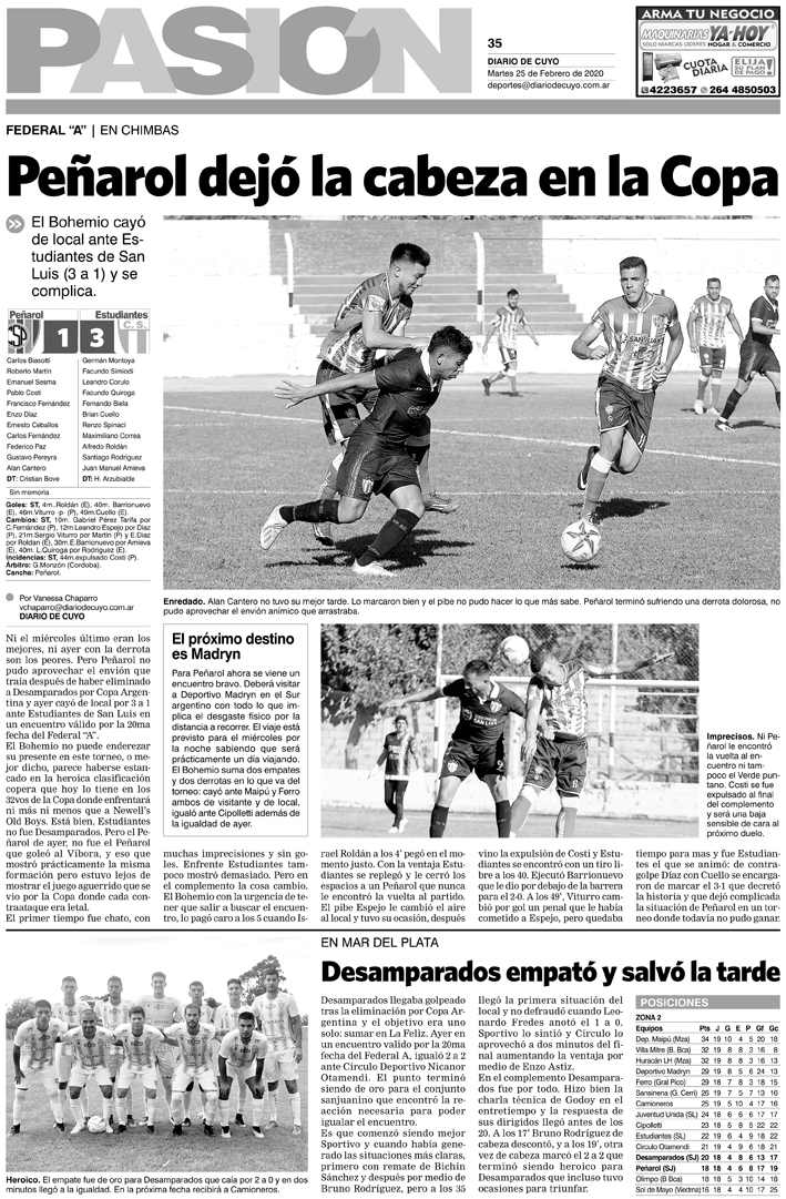 Diario de Cuyo | HOME | Noticias | Tapa Pasión Tapa Pasión 25 de Febrero de 2020 Por Redacción Diario de Cuyo 24/02/2020 · 0:00 Escuchar la noticia Escuchar la noticia Your browser doesn’t support HTML5 audio Tapa Pasión Ver los comentarios ›