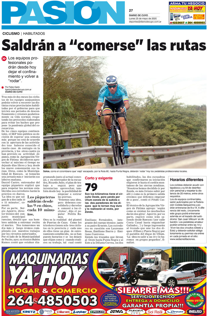Diario de Cuyo | HOME | Noticias Tapa Pasión 25 de Mayo del 2020 Por Redacción Diario de Cuyo 24/05/2020 · 0:00 Escuchar la noticia Escuchar la noticia Your browser doesn’t support HTML5 audio Ver los comentarios ›