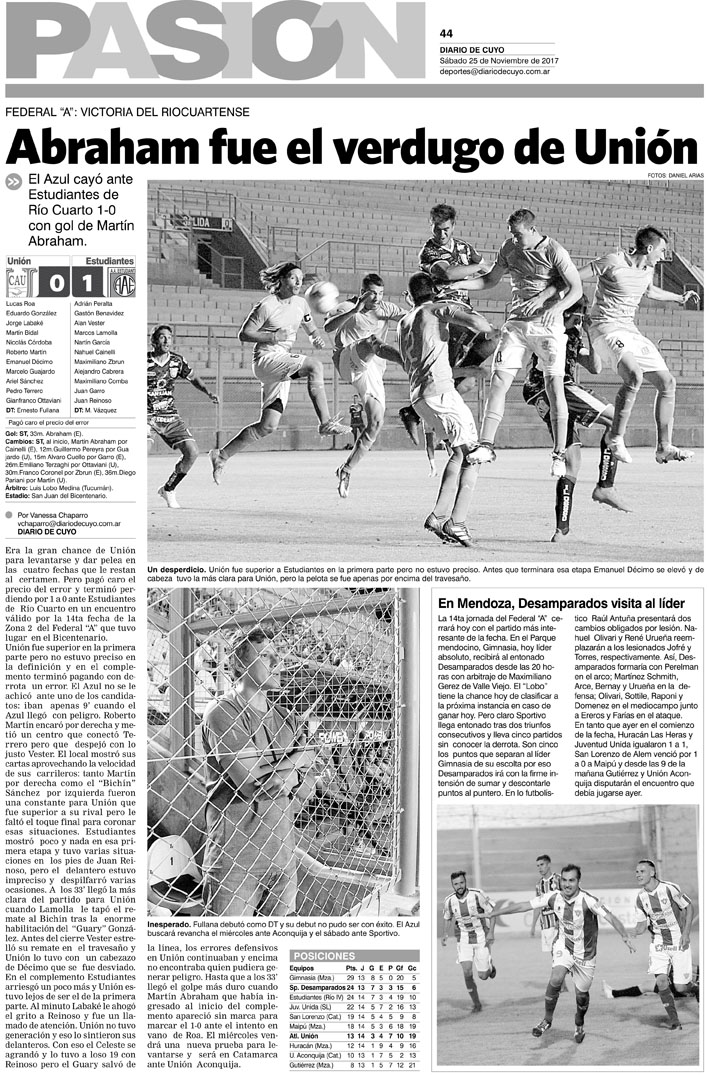 Diario de Cuyo | HOME | Noticias | Tapa Pasión Tapa Pasión 25 de Noviembre de 2017 Por Redacción Diario de Cuyo 25/11/2017 · 0:00 Escuchar la noticia Escuchar la noticia Your browser doesn’t support HTML5 audio Tapa Pasión Ver los comentarios ›