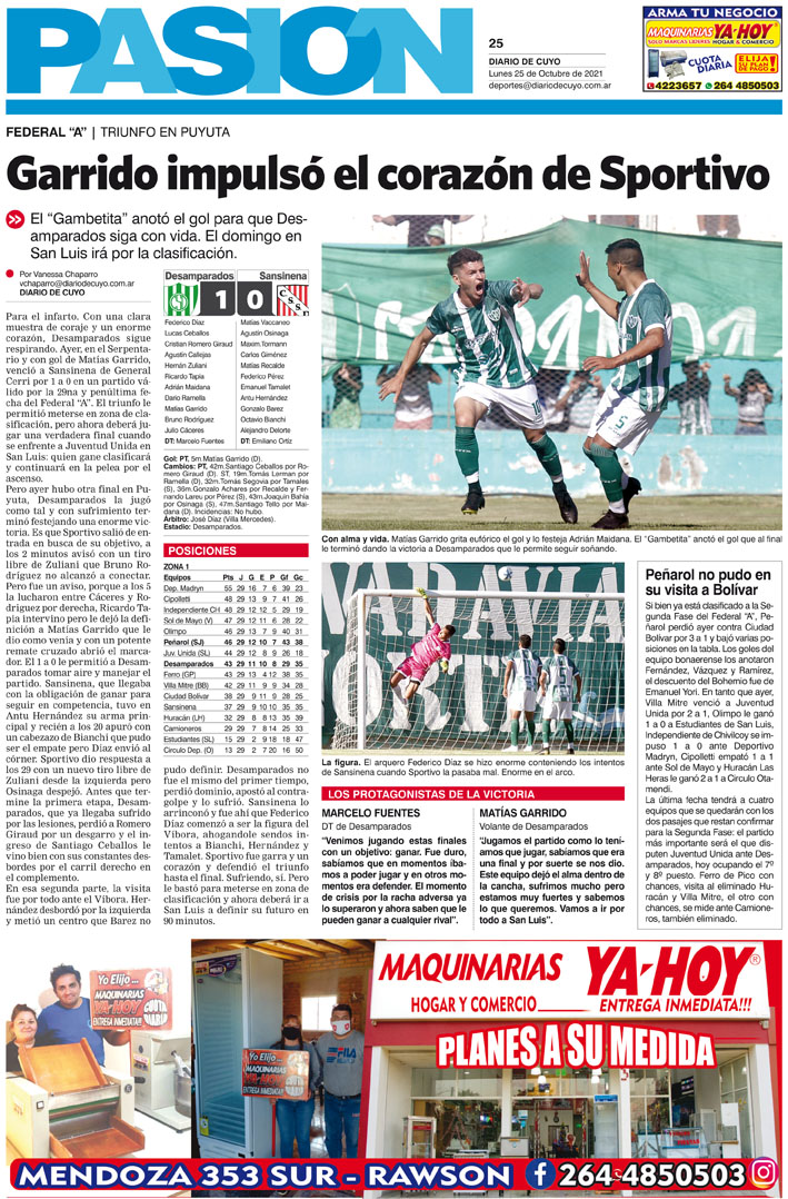 Diario de Cuyo | HOME | Noticias Tapa Pasión 25 de Octubre del 2021 Por Redacción Diario de Cuyo 24/10/2021 · 0:00 Escuchar la noticia Escuchar la noticia Your browser doesn’t support HTML5 audio Ver los comentarios ›