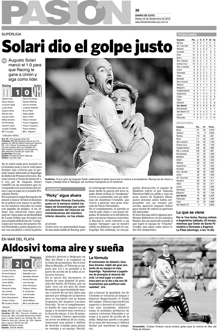 Diario de Cuyo | HOME | Noticias | Tapa Pasión Tapa Pasión 25 de Septiembre 2018 Por Redacción Diario de Cuyo 24/09/2018 · 0:00 Escuchar la noticia Escuchar la noticia Your browser doesn’t support HTML5 audio Tapa Pasión Ver los comentarios ›