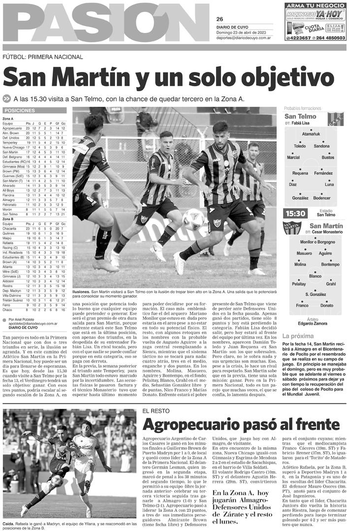 Diario de Cuyo | HOME | Noticias Tapa Pasión 26 de Abril del 2023 Por Redacción Diario de Cuyo 25/04/2023 · 0:00 Escuchar la noticia Escuchar la noticia Your browser doesn’t support HTML5 audio Ver los comentarios ›