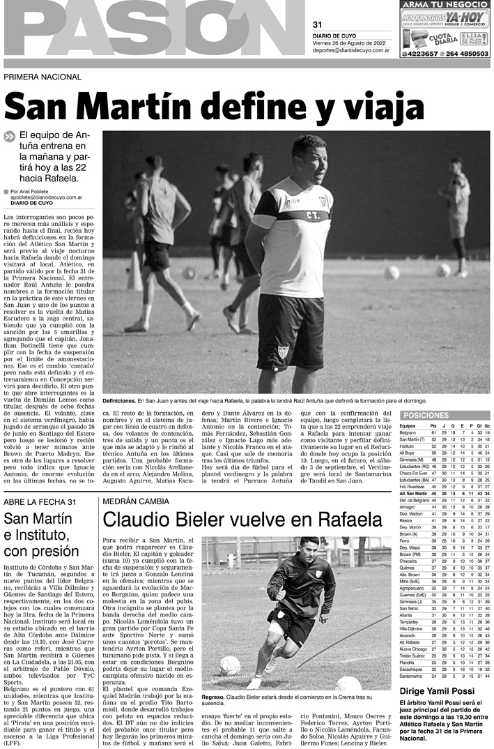 Diario de Cuyo | HOME | Noticias Tapa Pasión 26 de Agosto del 2022 Por Redacción Diario de Cuyo 25/08/2022 · 0:00 Escuchar la noticia Escuchar la noticia Your browser doesn’t support HTML5 audio Ver los comentarios ›
