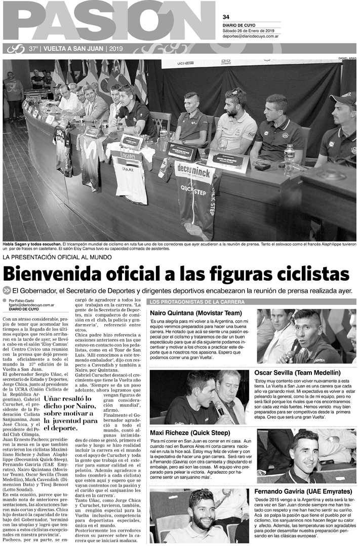Diario de Cuyo | HOME | Noticias | Tapa Pasión Tapa Pasión 26 de Enero de 2019 Por Redacción Diario de Cuyo 26/01/2019 · 0:00 Escuchar la noticia Escuchar la noticia Your browser doesn’t support HTML5 audio Tapa Pasión Ver los comentarios ›