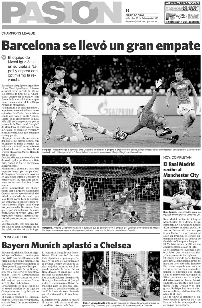 Diario de Cuyo | HOME | Noticias Tapa Pasión 26 de Febrero del 2020 Por Redacción Diario de Cuyo 25/02/2020 · 0:00 Escuchar la noticia Escuchar la noticia Your browser doesn’t support HTML5 audio Ver los comentarios ›