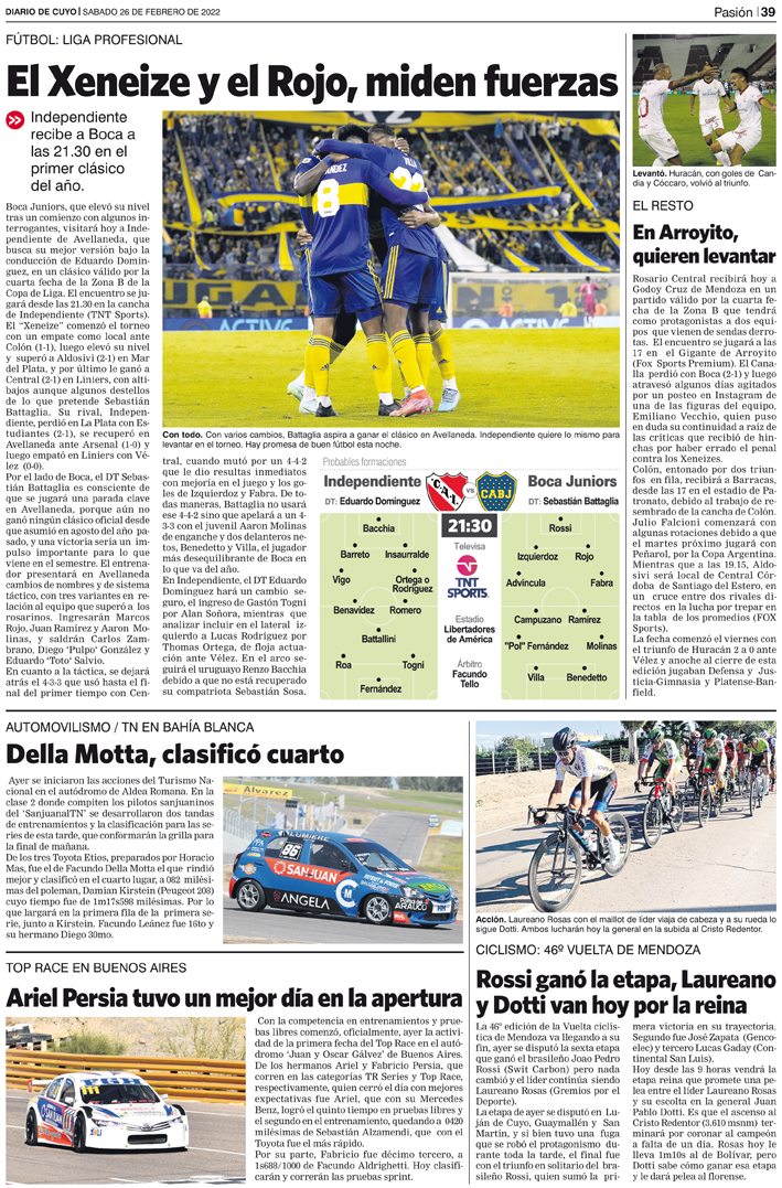 Diario de Cuyo | HOME | Noticias Tapa Pasión 26 de Febrero del 2022 Por Redacción Diario de Cuyo 26/02/2022 · 0:00 Escuchar la noticia Escuchar la noticia Your browser doesn’t support HTML5 audio Ver los comentarios ›
