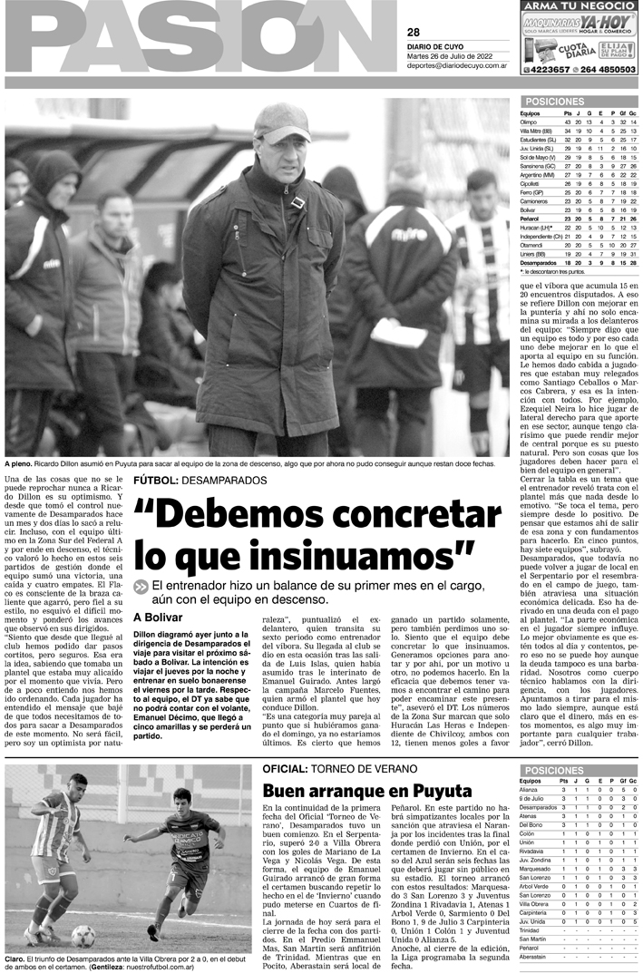 Diario de Cuyo | HOME | Noticias Tapa Pasión 26 de Julio del 2022 Por Redacción Diario de Cuyo 25/07/2022 · 0:00 Escuchar la noticia Escuchar la noticia Your browser doesn’t support HTML5 audio Ver los comentarios ›