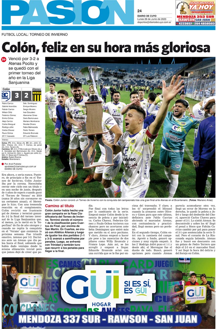 Diario de Cuyo | HOME | Noticias Tapa Pasión 26 de Junio del 2023 Por Redacción Diario de Cuyo 25/06/2023 · 0:00 Escuchar la noticia Escuchar la noticia Your browser doesn’t support HTML5 audio Ver los comentarios ›