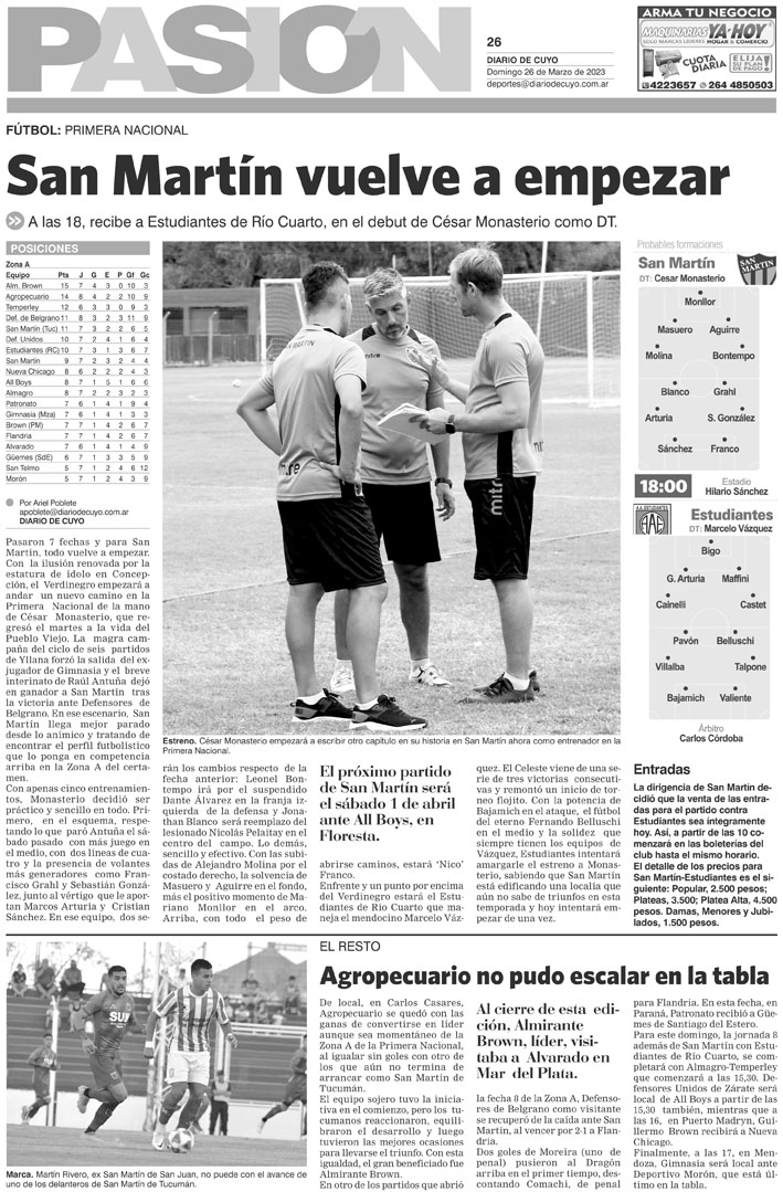 Diario de Cuyo | HOME | Noticias Tapa Pasión 26 de Marzo del 2023 Por Redacción Diario de Cuyo 25/03/2023 · 0:00 Escuchar la noticia Escuchar la noticia Your browser doesn’t support HTML5 audio Ver los comentarios ›