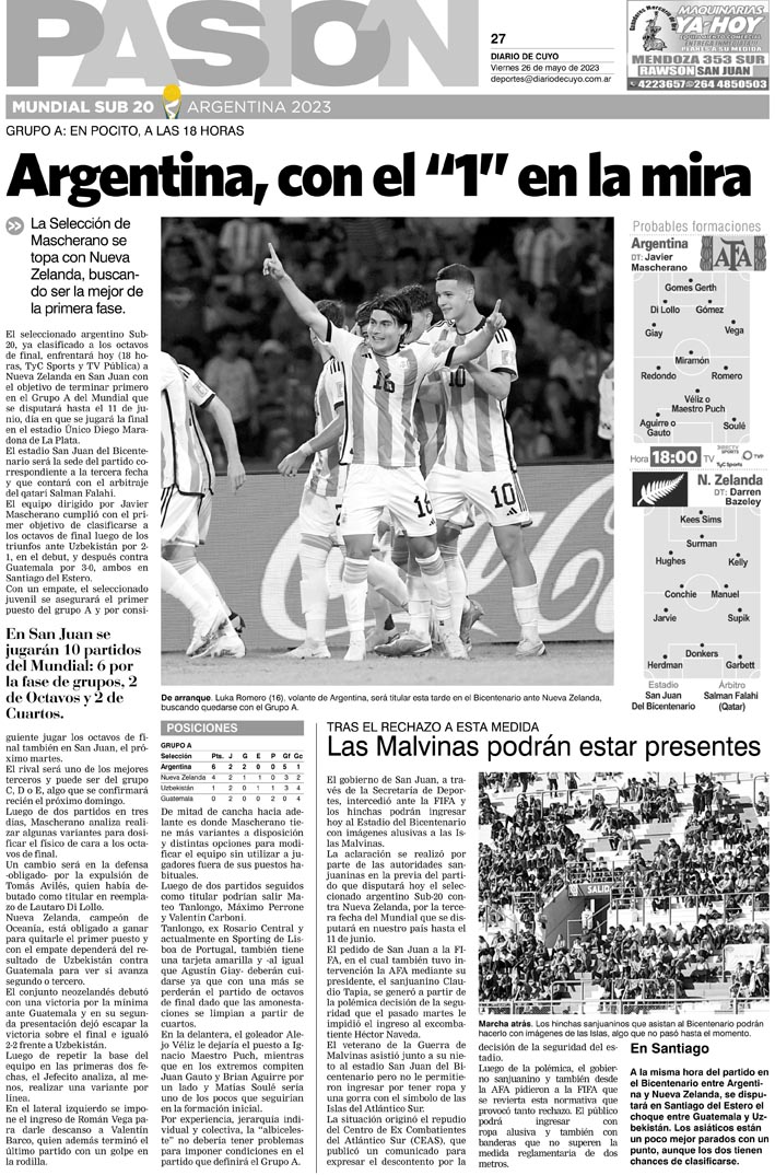 Diario de Cuyo | HOME | Noticias Tapa Pasión 26 de Mayo del 2023 Por Redacción Diario de Cuyo 25/05/2023 · 0:00 Escuchar la noticia Escuchar la noticia Your browser doesn’t support HTML5 audio Ver los comentarios ›