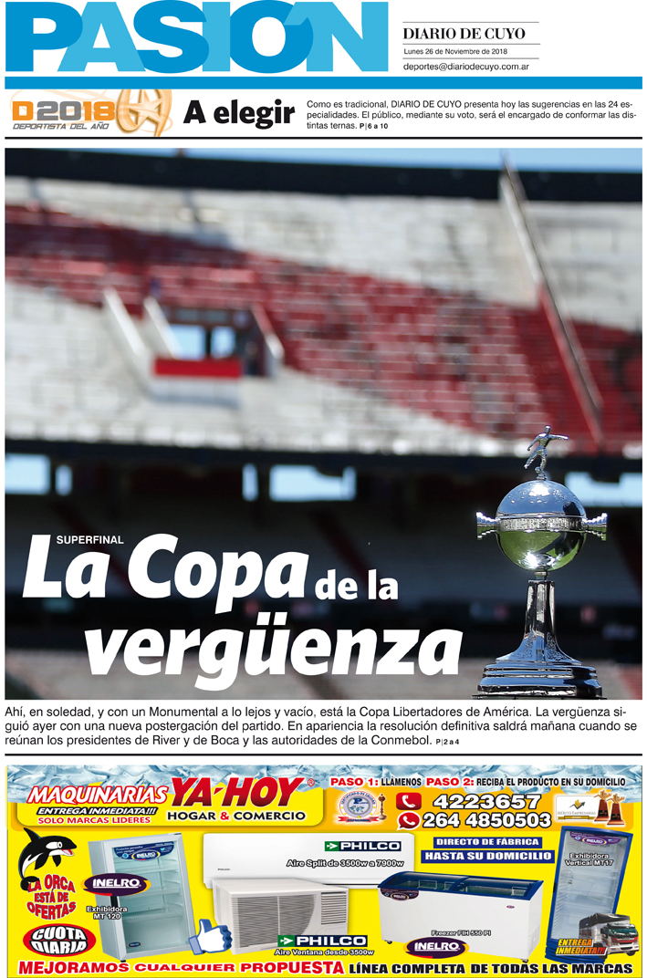Diario de Cuyo | HOME | Noticias | Tapa Pasión Tapa Pasión 26 de Noviembre 2018 Por Redacción Diario de Cuyo 26/11/2018 · 0:00 Escuchar la noticia Escuchar la noticia Your browser doesn’t support HTML5 audio Tapa Pasión Ver los comentarios ›