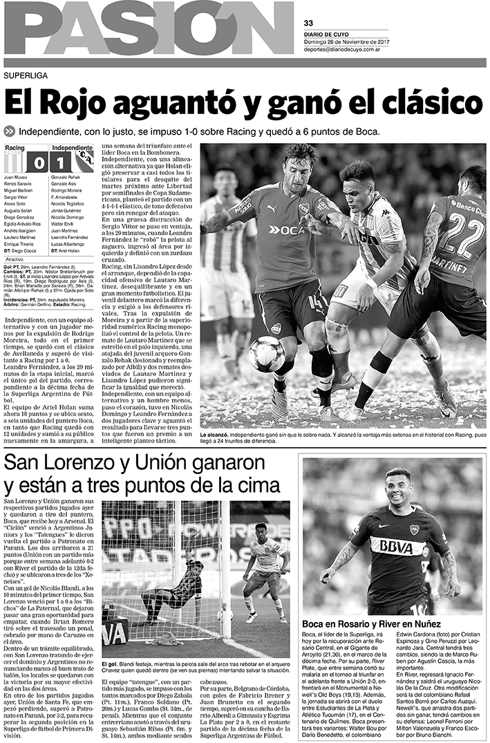 Diario de Cuyo | HOME | Noticias | Tapa Pasión Tapa Pasión 26 de Noviembre de 2017 Por Redacción Diario de Cuyo 26/11/2017 · 0:00 Escuchar la noticia Escuchar la noticia Your browser doesn’t support HTML5 audio Tapa Pasión Ver los comentarios ›