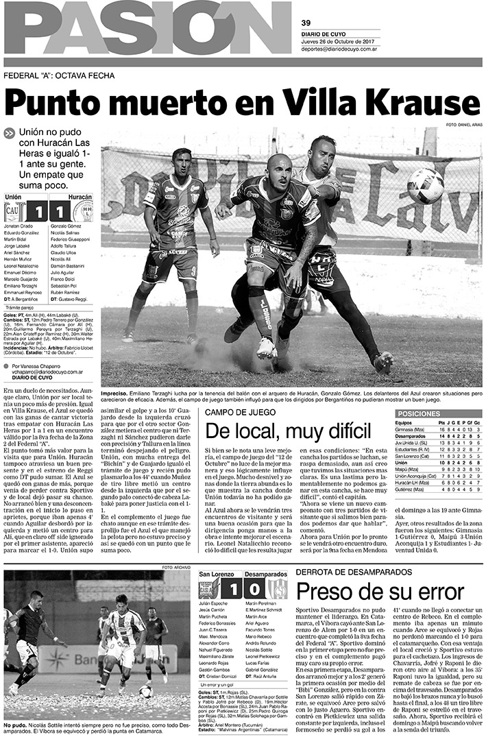 Diario de Cuyo | HOME | Noticias | Tapa Pasión Tapa Pasión 26 de Octubre del 2017 Por Redacción Diario de Cuyo 26/10/2017 · 0:00 Escuchar la noticia Escuchar la noticia Your browser doesn’t support HTML5 audio Tapa Pasión Ver los comentarios ›