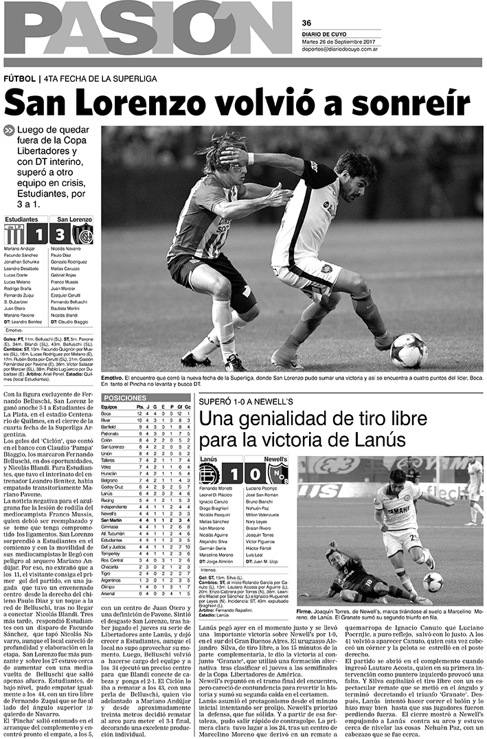 Diario de Cuyo | HOME | Noticias Tapa Pasión 26 de Septiembre del 2017 Por Redacción Diario de Cuyo 25/09/2017 · 0:00 Escuchar la noticia Escuchar la noticia Your browser doesn’t support HTML5 audio Ver los comentarios ›