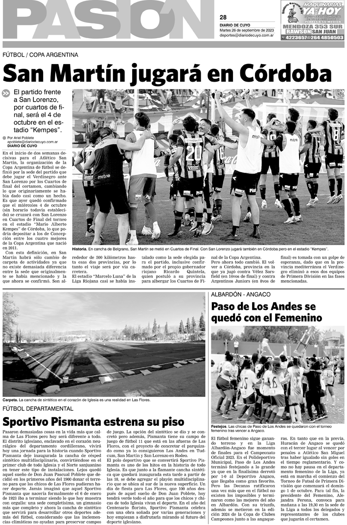 Diario de Cuyo | HOME | Noticias Tapa Pasión 26 de Septiembre del 2023 Por Redacción Diario de Cuyo 25/09/2023 · 0:00 Escuchar la noticia Escuchar la noticia Your browser doesn’t support HTML5 audio Ver los comentarios ›