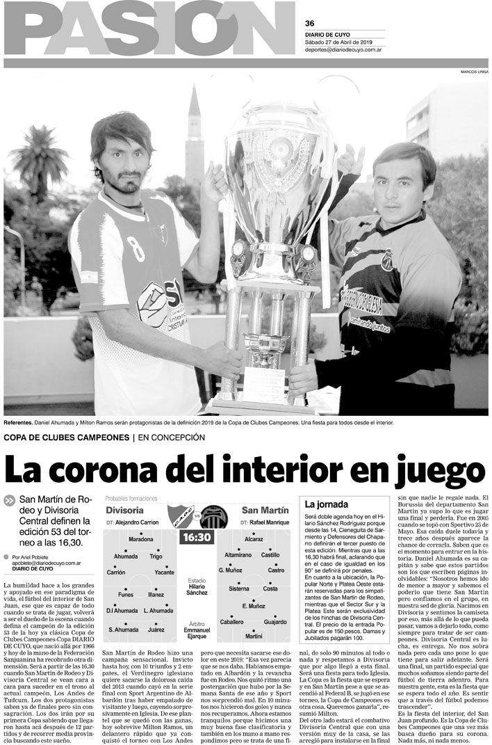 Diario de Cuyo | HOME | Noticias | Tapa Pasión Tapa Pasión 27 de Abril de 2019 Por Redacción Diario de Cuyo 27/04/2019 · 0:00 Escuchar la noticia Escuchar la noticia Your browser doesn’t support HTML5 audio Tapa Pasión Ver los comentarios ›