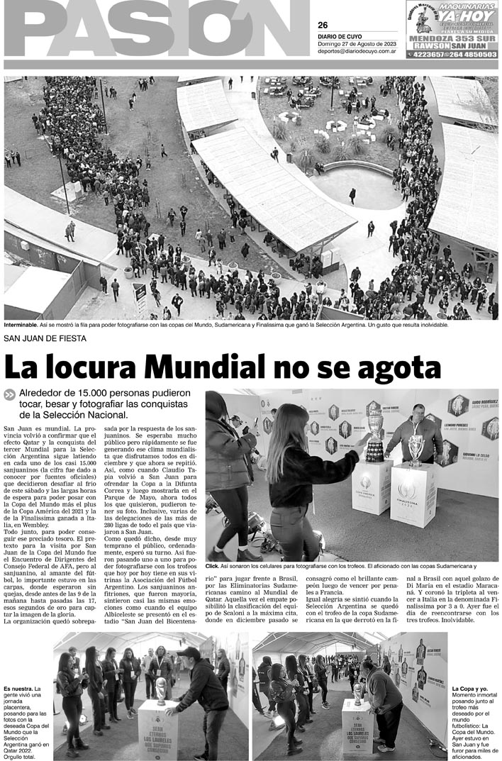 Diario de Cuyo | HOME | Noticias Tapa Pasión 27 de Agosto del 2023 Por Redacción Diario de Cuyo 26/08/2023 · 0:00 Escuchar la noticia Escuchar la noticia Your browser doesn’t support HTML5 audio Ver los comentarios ›