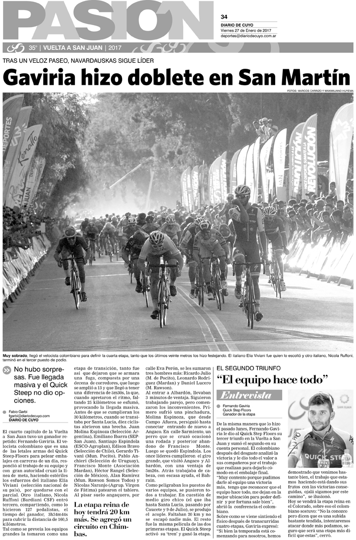 Diario de Cuyo | HOME | Noticias Tapa Pasión 27 de Enero del 2017 Por Redacción Diario de Cuyo 26/01/2017 · 0:00 Escuchar la noticia Escuchar la noticia Your browser doesn’t support HTML5 audio Ver los comentarios ›