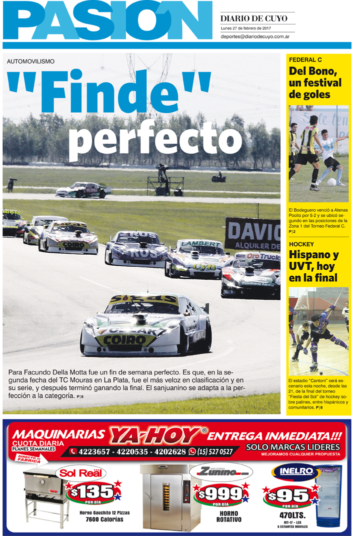 Diario de Cuyo | HOME | Noticias Tapa Pasión 27 de Febrero del 2017 Por Redacción Diario de Cuyo 27/02/2017 · 0:00 Escuchar la noticia Escuchar la noticia Your browser doesn’t support HTML5 audio Ver los comentarios ›