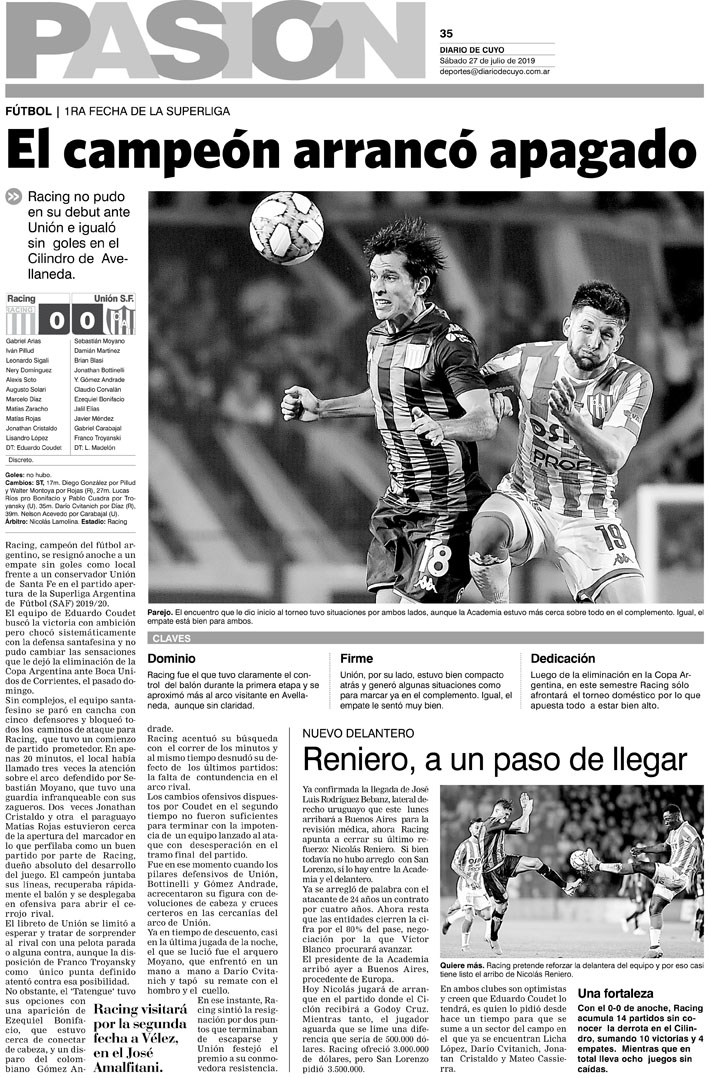 Diario de Cuyo | HOME | Noticias | Tapa Pasión Tapa Pasión 27 de Julio 2019 Por Redacción Diario de Cuyo 27/07/2019 · 0:00 Escuchar la noticia Escuchar la noticia Your browser doesn’t support HTML5 audio Tapa Pasión Ver los comentarios ›