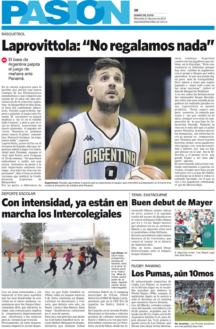 Diario de Cuyo | HOME | Noticias | Tapa Pasión Tapa Pasión 27 de Junio 2018 Por Redacción Diario de Cuyo 26/06/2018 · 0:00 Escuchar la noticia Escuchar la noticia Your browser doesn’t support HTML5 audio Tapa Pasión Ver los comentarios ›