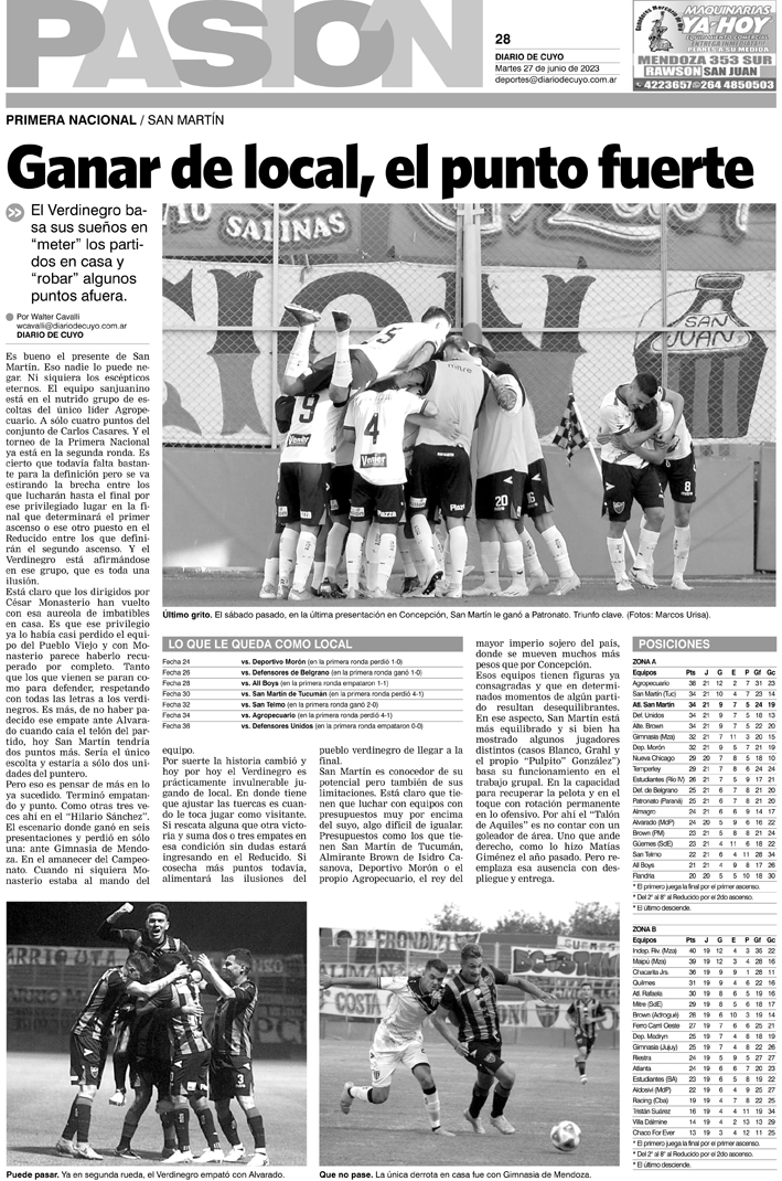 Diario de Cuyo | HOME | Noticias Tapa Pasión 27 de Junio de 2023 Por Redacción Diario de Cuyo 26/06/2023 · 0:00 Escuchar la noticia Escuchar la noticia Your browser doesn’t support HTML5 audio Ver los comentarios ›