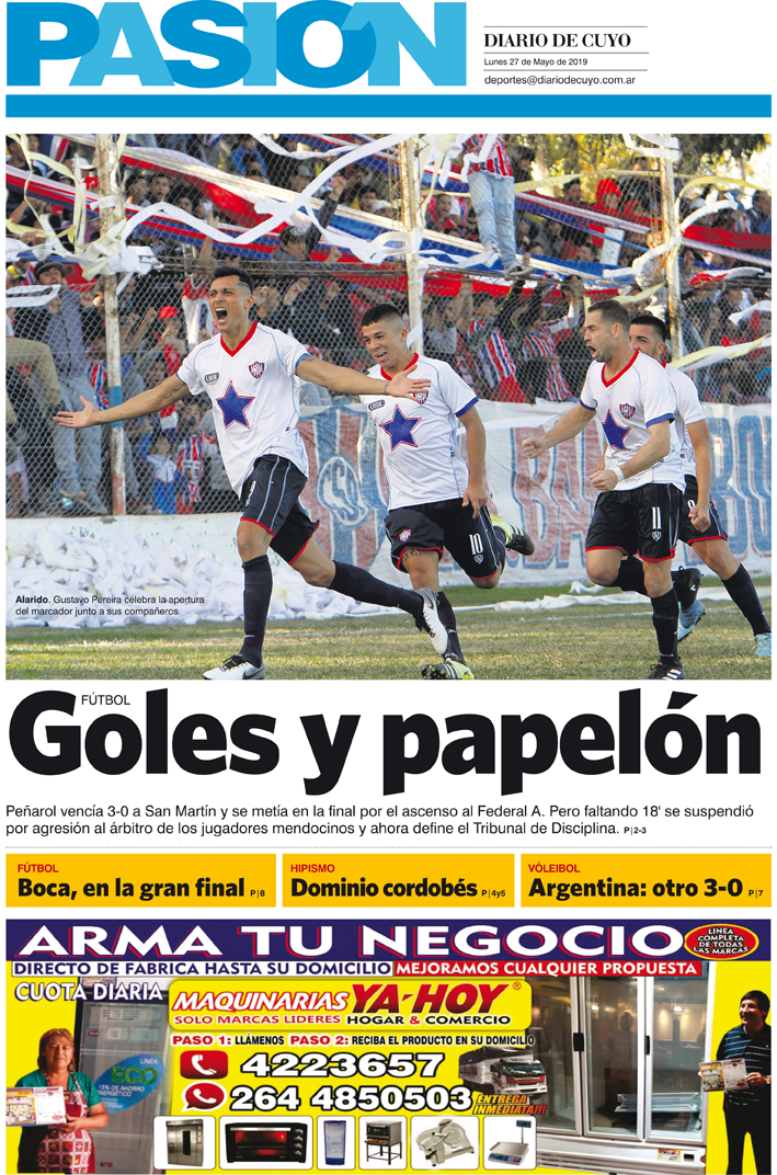 Diario de Cuyo | HOME | Noticias | Tapa Pasión Tapa Pasión 27 de Mayo 2019 Por Redacción Diario de Cuyo 26/05/2019 · 0:00 Escuchar la noticia Escuchar la noticia Your browser doesn’t support HTML5 audio Tapa Pasión Ver los comentarios ›