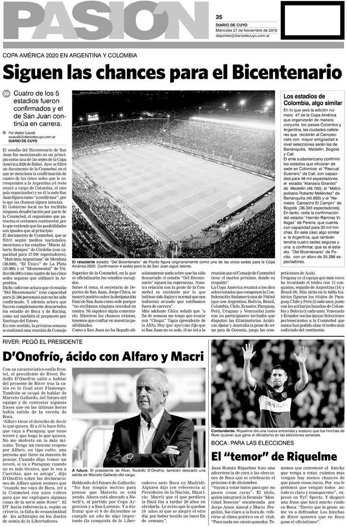 Diario de Cuyo | HOME | Noticias | Tapa Pasión Tapa Pasión 27 de Noviembre 2019 Por Redacción Diario de Cuyo 26/11/2019 · 0:00 Escuchar la noticia Escuchar la noticia Your browser doesn’t support HTML5 audio Tapa Pasión Ver los comentarios ›