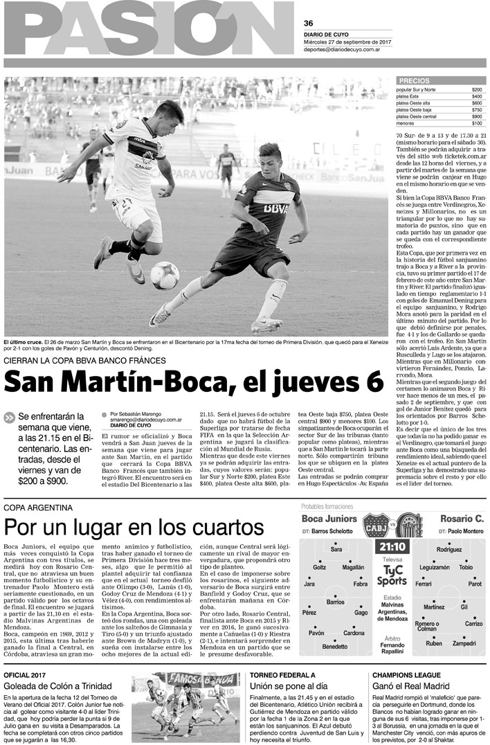 Diario de Cuyo | HOME | Noticias Tapa Pasión 27 de Septiembre de 2017 Por Redacción Diario de Cuyo 26/09/2017 · 0:00 Escuchar la noticia Escuchar la noticia Your browser doesn’t support HTML5 audio Ver los comentarios ›