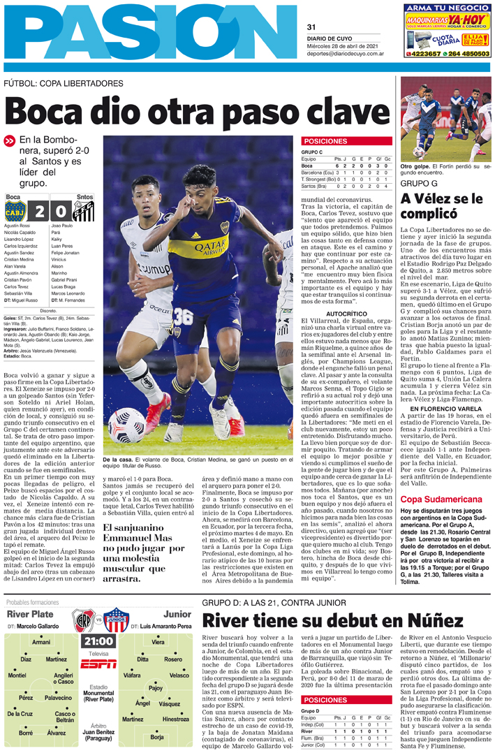 Diario de Cuyo | HOME | Noticias Tapa Pasión 28 de Abril del 2021 Por Redacción Diario de Cuyo 27/04/2021 · 0:00 Escuchar la noticia Escuchar la noticia Your browser doesn’t support HTML5 audio Ver los comentarios ›