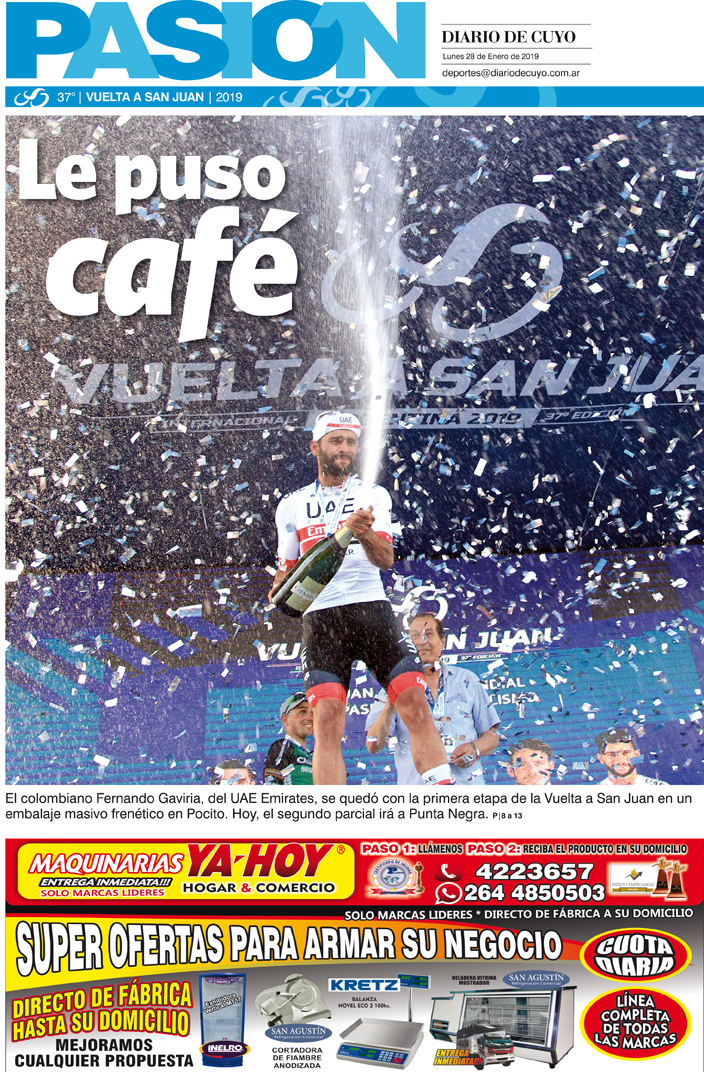 Diario de Cuyo | HOME | Noticias | Tapa Pasión Tapa Pasión 28 de Enero de 2019 Por Redacción Diario de Cuyo 28/01/2019 · 0:00 Escuchar la noticia Escuchar la noticia Your browser doesn’t support HTML5 audio Tapa Pasión Ver los comentarios ›