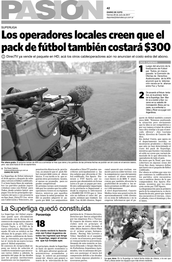 Diario de Cuyo | HOME | Noticias Tapa Pasión 28 de Julio de 2017 Por Redacción Diario de Cuyo 27/07/2017 · 0:00 Escuchar la noticia Escuchar la noticia Your browser doesn’t support HTML5 audio Ver los comentarios ›