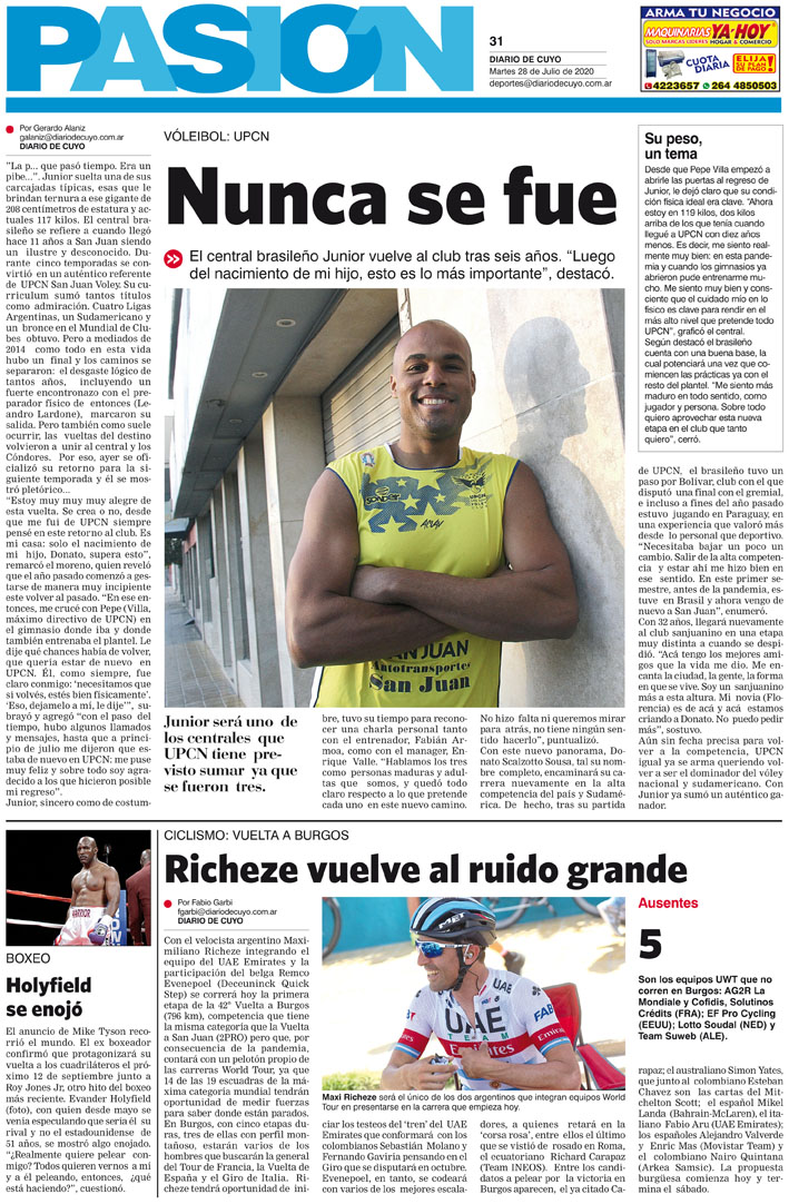 Diario de Cuyo | HOME | Noticias Tapa Pasión 28 de Julio del 2020 Por Redacción Diario de Cuyo 27/07/2020 · 0:00 Escuchar la noticia Escuchar la noticia Your browser doesn’t support HTML5 audio Ver los comentarios ›