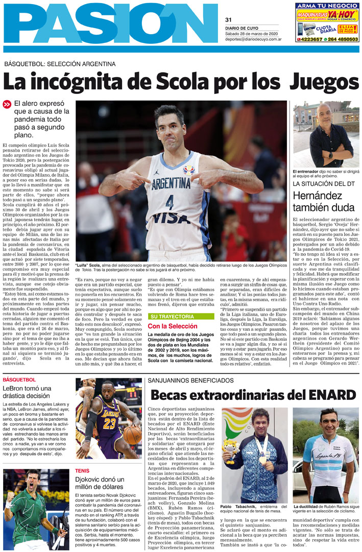 Diario de Cuyo | HOME | Noticias Tapa Pasion 28 de Marzo del 2020 Por Redacción Diario de Cuyo 27/03/2020 · 0:00 Escuchar la noticia Escuchar la noticia Your browser doesn’t support HTML5 audio Ver los comentarios ›