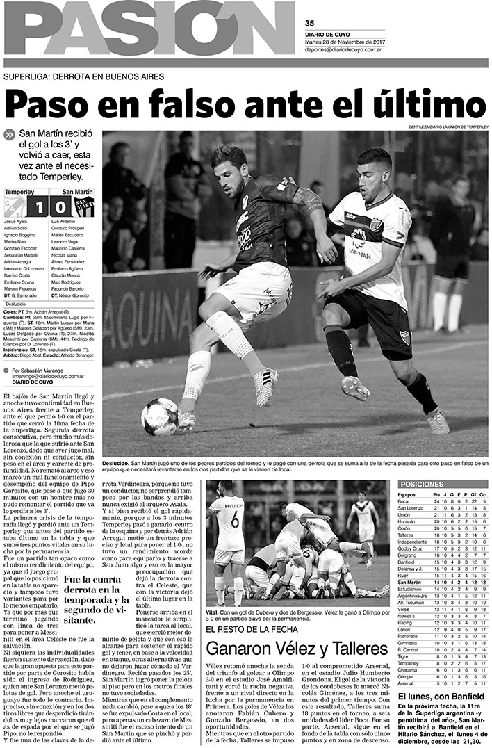 Diario de Cuyo | HOME | Noticias | Tapa Pasión Tapa Pasión 28 de Noviembre del 2017 Por Redacción Diario de Cuyo 28/11/2017 · 0:00 Escuchar la noticia Escuchar la noticia Your browser doesn’t support HTML5 audio Tapa Pasión Ver los comentarios ›