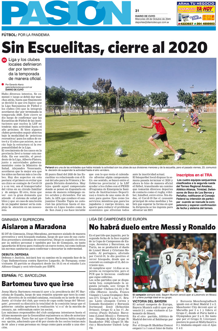 Diario de Cuyo | HOME | Noticias Tapa Pasión 28 de Octubre del 2020 Por Redacción Diario de Cuyo 27/10/2020 · 0:00 Escuchar la noticia Escuchar la noticia Your browser doesn’t support HTML5 audio Ver los comentarios ›