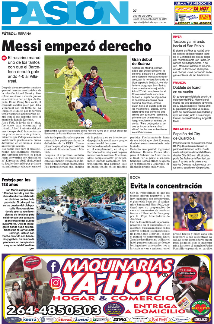 Diario de Cuyo | HOME | Noticias Tapa Pasión 28 de Septiembre del 2020 Por Redacción Diario de Cuyo 27/09/2020 · 0:00 Escuchar la noticia Escuchar la noticia Your browser doesn’t support HTML5 audio Ver los comentarios ›