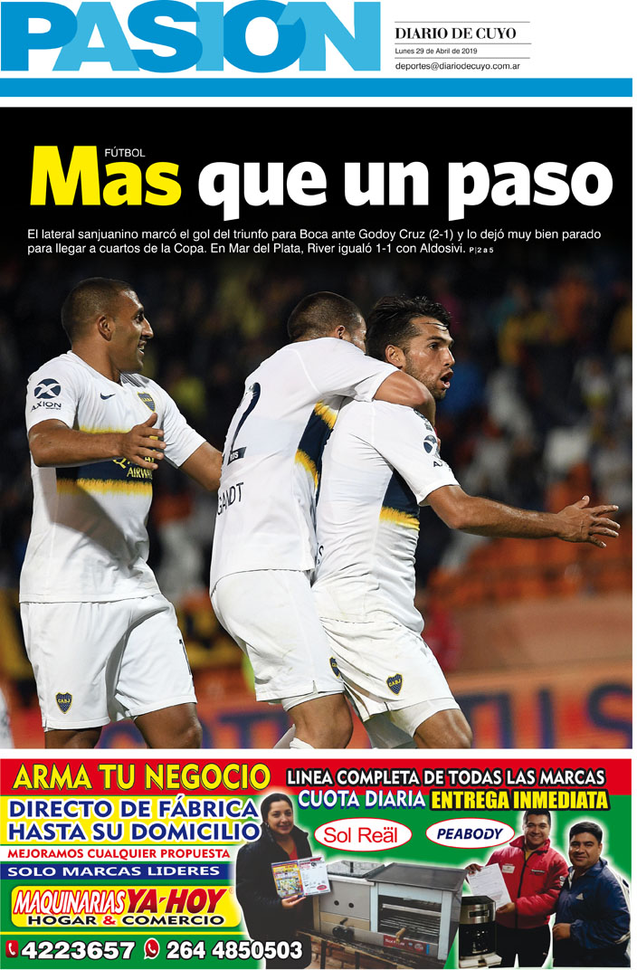 Diario de Cuyo | HOME | Noticias | Tapa Pasión Tapa Pasión 29 de Abril 2019 Por Redacción Diario de Cuyo 28/04/2019 · 0:00 Escuchar la noticia Escuchar la noticia Your browser doesn’t support HTML5 audio Tapa Pasión Ver los comentarios ›