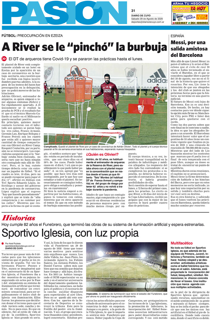 Diario de Cuyo | HOME | Noticias Tapa Pasión 29 de Agosto del 2020 Por Redacción Diario de Cuyo 28/08/2020 · 0:00 Escuchar la noticia Escuchar la noticia Your browser doesn’t support HTML5 audio Ver los comentarios ›