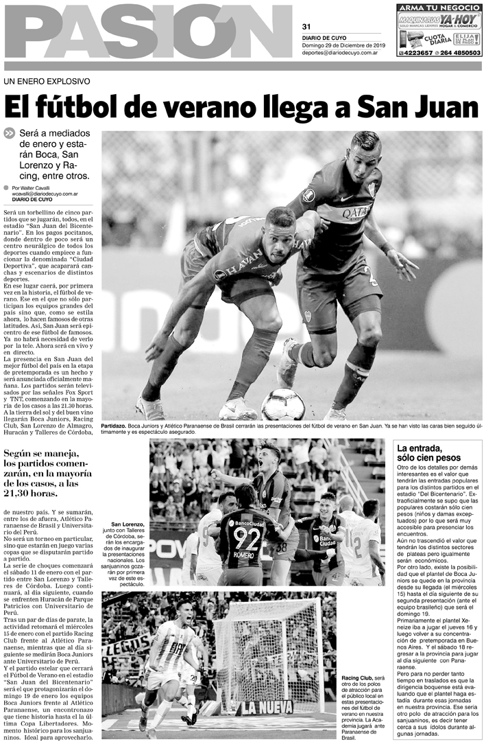 Diario de Cuyo | HOME | Noticias | Tapa Pasión Tapa Pasión 29 de Diciembre 2019 Por Redacción Diario de Cuyo 28/12/2019 · 0:00 Escuchar la noticia Escuchar la noticia Your browser doesn’t support HTML5 audio Tapa Pasión Ver los comentarios ›
