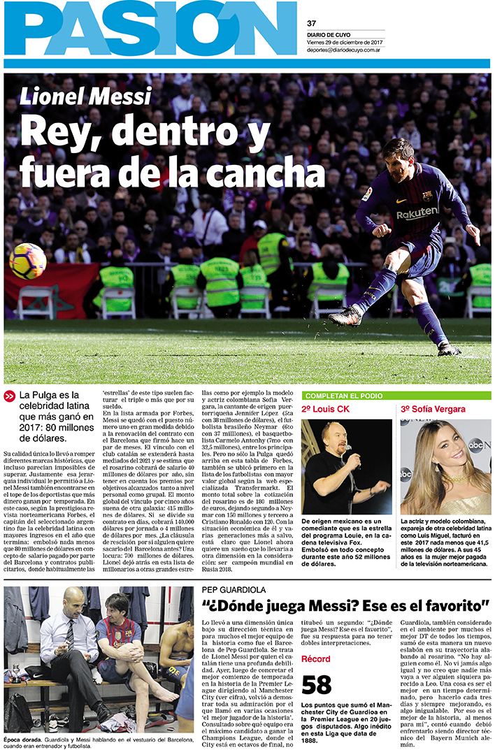 Diario de Cuyo | HOME | Noticias | Tapa Pasión Tapa Pasión 29 de Diciembre del 2017 Por Redacción Diario de Cuyo 28/12/2017 · 0:00 Escuchar la noticia Escuchar la noticia Your browser doesn’t support HTML5 audio Tapa Pasión Ver los comentarios ›
