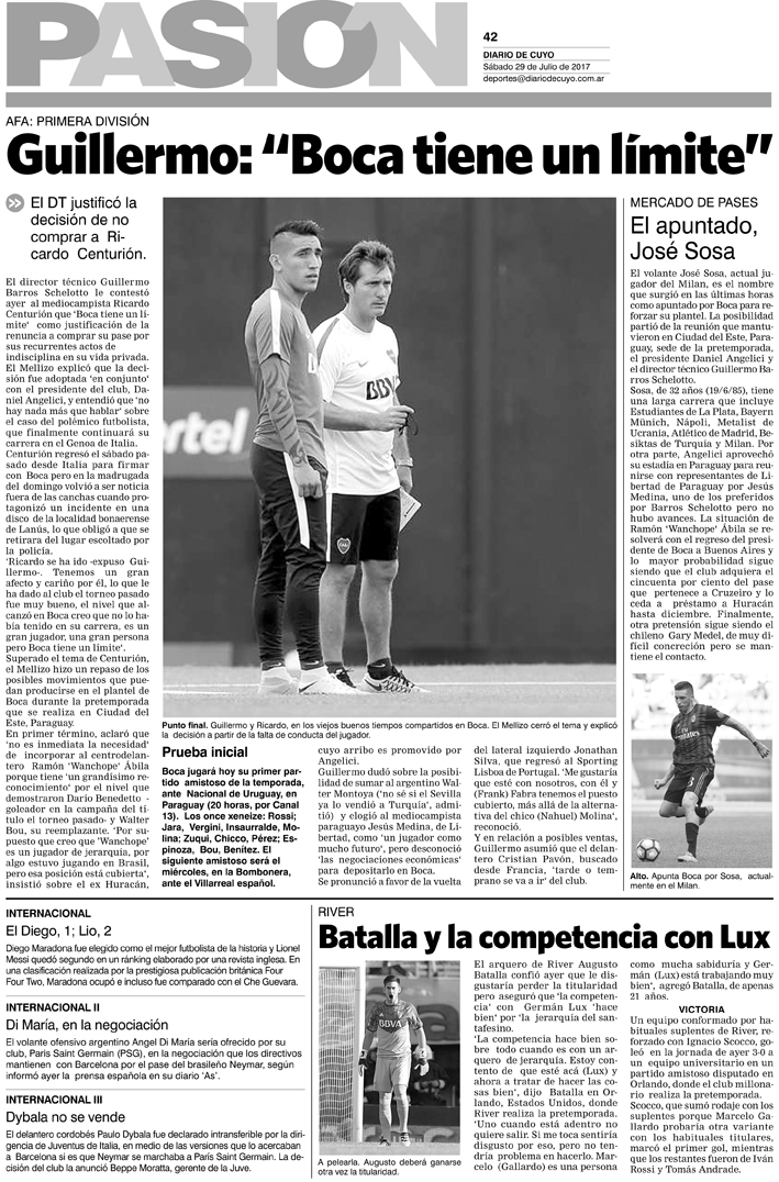 Diario de Cuyo | HOME | Noticias Tapa Pasión 29 de Julio de 2017 Por Redacción Diario de Cuyo 28/07/2017 · 0:00 Escuchar la noticia Escuchar la noticia Your browser doesn’t support HTML5 audio Ver los comentarios ›