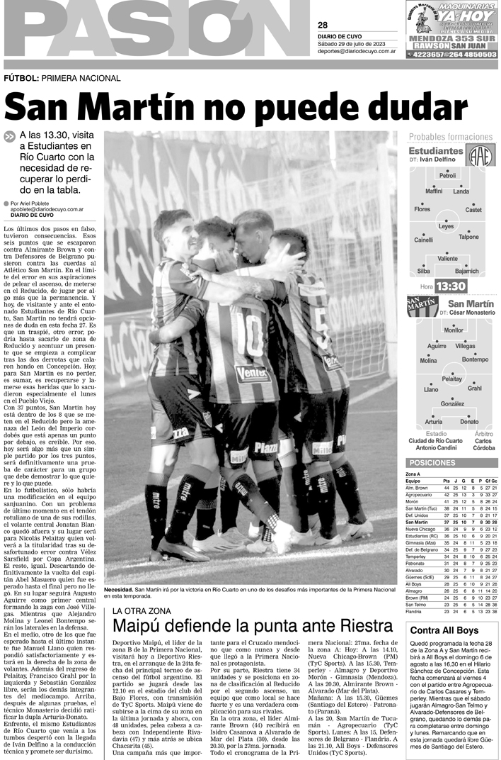 Diario de Cuyo | HOME | Noticias Tapa Pasión 29 de Julio de 2023 Por Redacción Diario de Cuyo 29/07/2023 · 0:00 Escuchar la noticia Escuchar la noticia Your browser doesn’t support HTML5 audio Ver los comentarios ›