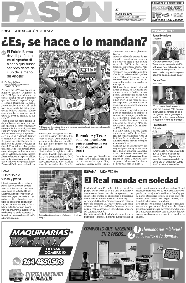 Diario de Cuyo | HOME | Noticias | Tapa Pasión Tapa Pasión 29 de Junio de 2020 Por Redacción Diario de Cuyo 28/06/2020 · 0:00 Escuchar la noticia Escuchar la noticia Your browser doesn’t support HTML5 audio Tapa Pasión Ver los comentarios ›