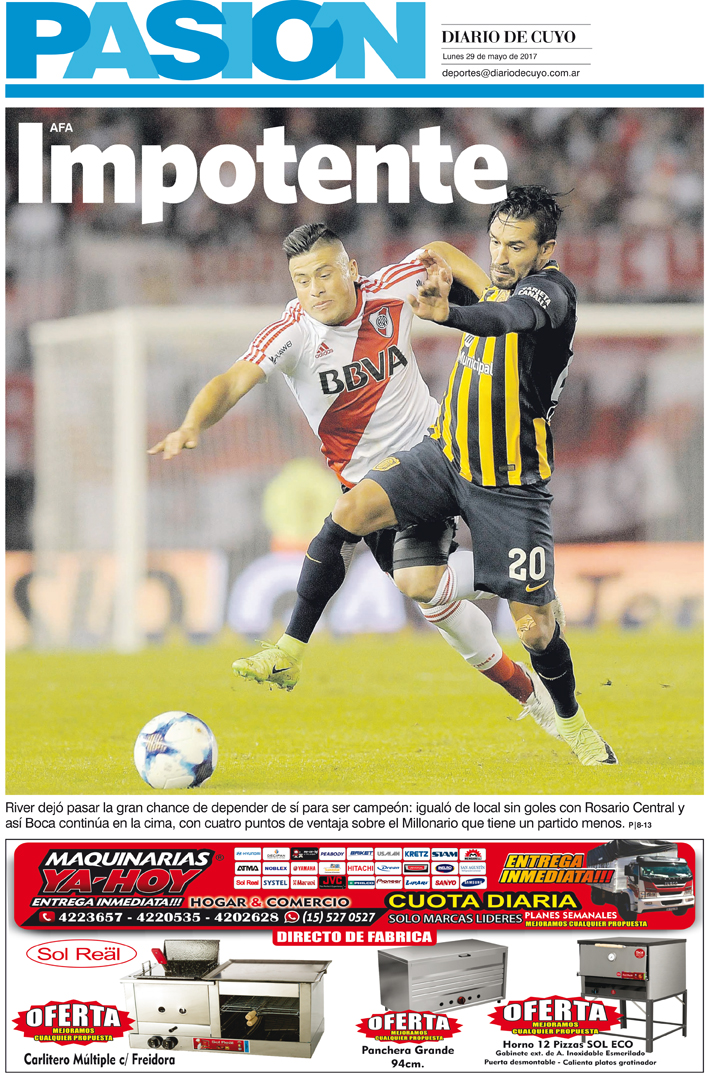 Diario de Cuyo | HOME | Noticias Tapa Pasión 29 de Mayo del 2017 Por Redacción Diario de Cuyo 29/05/2017 · 0:00 Escuchar la noticia Escuchar la noticia Your browser doesn’t support HTML5 audio Ver los comentarios ›