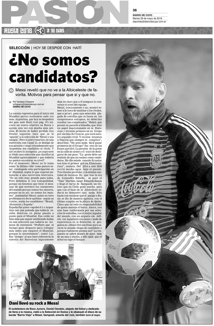 Diario de Cuyo | HOME | Noticias | Tapa Pasión Tapa Pasión 29 de Mayo del 2018 Por Redacción Diario de Cuyo 28/05/2018 · 0:00 Escuchar la noticia Escuchar la noticia Your browser doesn’t support HTML5 audio Tapa Pasión Ver los comentarios ›