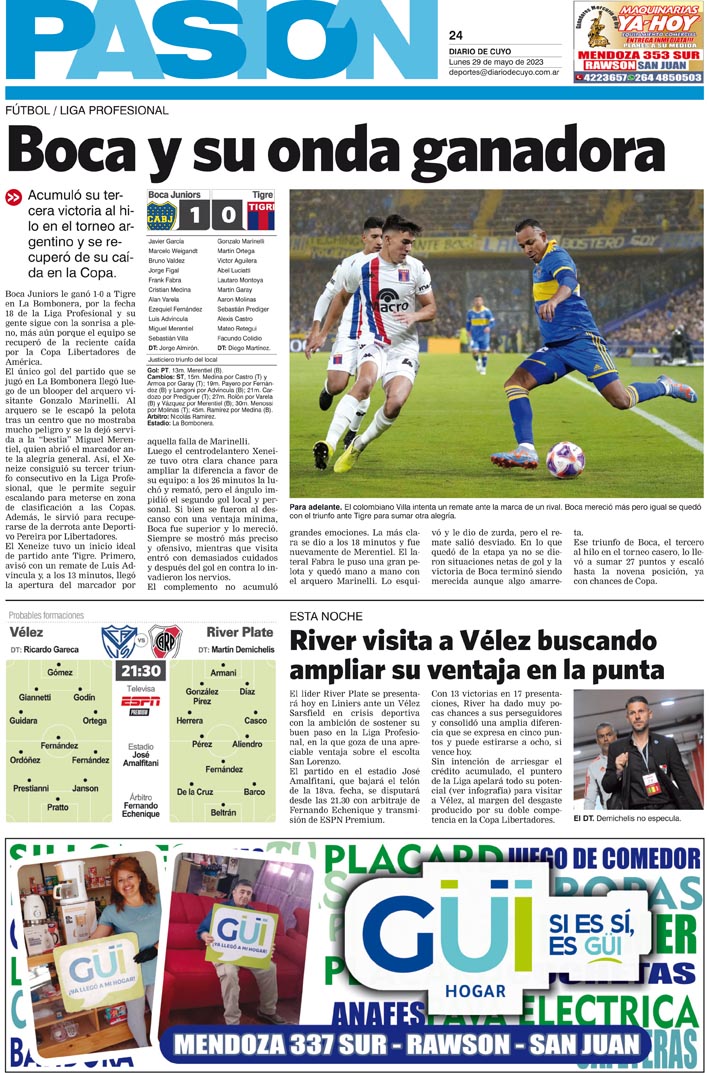 Diario de Cuyo | HOME | Noticias Tapa Pasión 29 de Mayo del 2023 Por Redacción Diario de Cuyo 29/05/2023 · 0:00 Escuchar la noticia Escuchar la noticia Your browser doesn’t support HTML5 audio Ver los comentarios ›