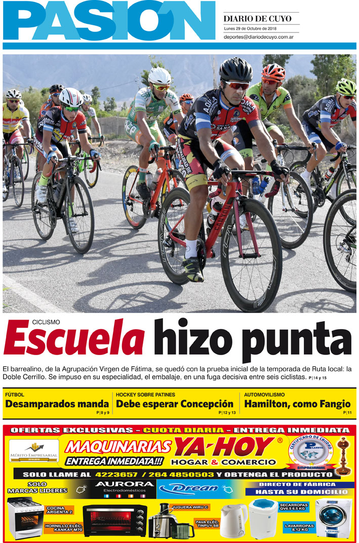 Diario de Cuyo | HOME | Noticias | Tapa Pasión Tapa Pasión 29 de Octubre 2018 Por Redacción Diario de Cuyo 29/10/2018 · 0:00 Escuchar la noticia Escuchar la noticia Your browser doesn’t support HTML5 audio Tapa Pasión Ver los comentarios ›