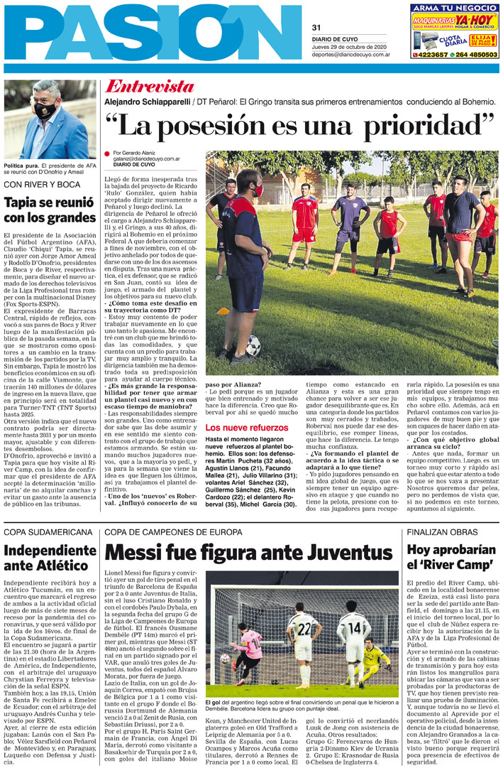 Diario de Cuyo | HOME | Noticias Tapa Pasión 29 de Octubre del 2020 Por Redacción Diario de Cuyo 28/10/2020 · 0:00 Escuchar la noticia Escuchar la noticia Your browser doesn’t support HTML5 audio Ver los comentarios ›