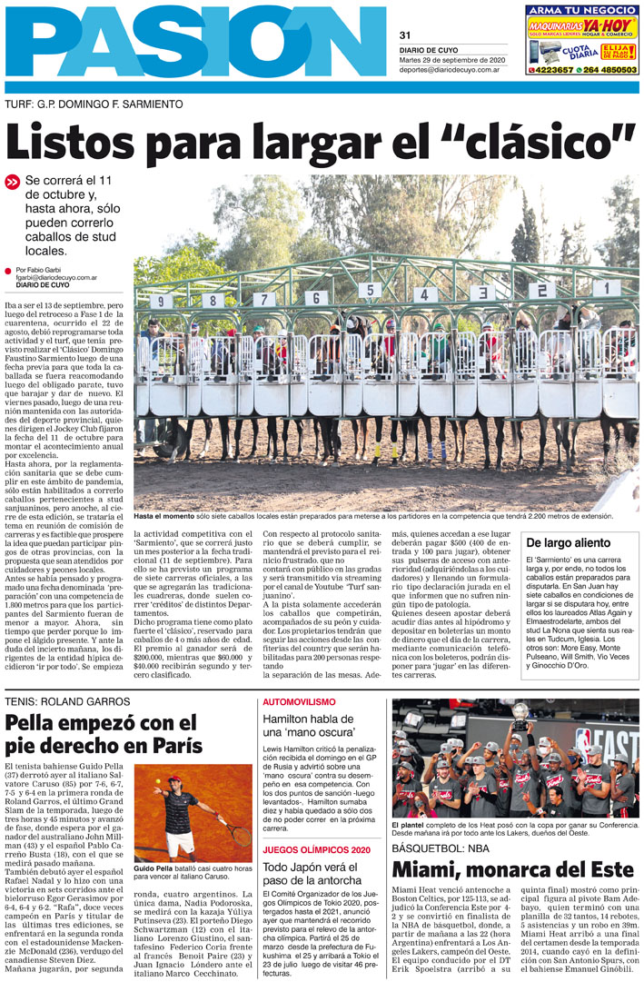 Diario de Cuyo | HOME | Noticias Tapa Pasión 29 de Septiembre del 2020 Por Redacción Diario de Cuyo 28/09/2020 · 0:00 Escuchar la noticia Escuchar la noticia Your browser doesn’t support HTML5 audio Ver los comentarios ›